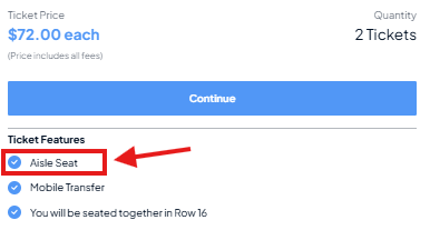 If a group of tickets includes aisle seating, that detail will be clearly listed in the “notes” section of the listing.